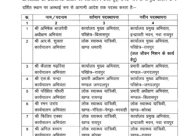 39 इंजीनियरों के तबादले, पीएचई में थे पदस्थ
