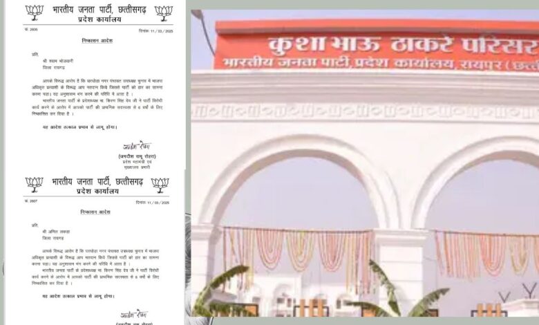 CG Breaking : भाजपा ने दो पार्षदों को 6 साल के लिए किया निष्कासित, 9 पार्षदों के बाद भी नगर पंचायत उपाध्यक्ष नहीं बना पाई BJP
