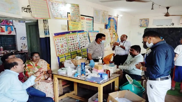 मरीजों का हालचाल जानते हुए स्वास्थ्य अमला