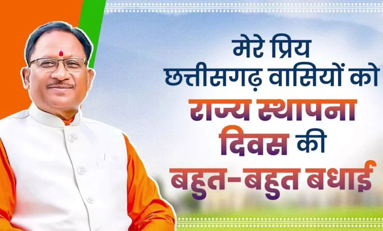 मुख्यमंत्री विष्णु देव साय ने छत्तीसगढ़ राज्य स्थापना दिवस के अवसर पर प्रदेशवासियों को हार्दिक बधाई एवं शुभकामनाएं भी दी है। मुख्यमंत्री ने कहा है कि, ‘छत्तीसगढ़ राज्य निर्माण के 24 वर्ष पूरे हो रहे हैं। देश के पूर्व प्रधानमंत्री भारत रत्न स्वर्गीय अटल बिहारी वाजपेयी ने जिस परिकल्पना के साथ छत्तीसगढ़ राज्य का निर्माण किया था, उन्हें साकार करने की दिशा में प्रदेश निरंतर अग्रसर है। राज्य निर्माण के बाद छत्तीसगढ़ ने हर क्षेत्र में प्रगति की है। राज्य सरकार आदिवासियों, किसानों, मजदूरों, वंचित वर्ग के लोगों तक उनके अधिकार पहुचाने के लिए लगातार काम कर रही है। प्रधानमंत्री नरेन्द्र मोदी के नेतृत्व में डबल इंजन की सरकार विकास के लक्ष्य को तेजी से हासिल करेगी।’