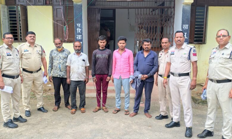 गिरफ्तार आरोपी: रवि यादव, नीरज नेताम उर्फ दउवाराम, शेख कलीमुद्दीन, शैलेन्द्र कुमार उर्फ बिहारी और राज पटेल