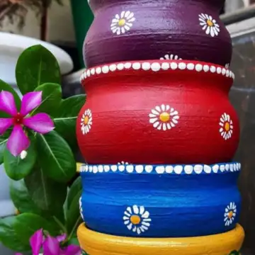 Image Source Pinterestअगर आपको पेंटिंग का शौक है तो आप मटकी को अपने हाथों से रंग सकते हैं। आप इसमें रंग-बिरंगे रंग जैसे लाल, नीला, पीला, हरा, गुलाबी आदि का उपयोग कर सकते हैं। सफेद रंग