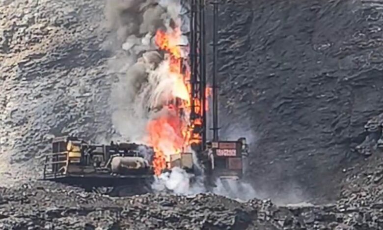कोरबा: SECL खदान के ड्रिल मशीन में लगी भीषण आग, देखें Video …