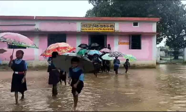 मोहला मानपुर: तालाब में तब्दील हुए स्कूल, गेट से लेकर क्लासरूम तक भराव पानी ही पानी, अधिकारियों ने साधी चुप्पी