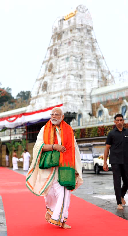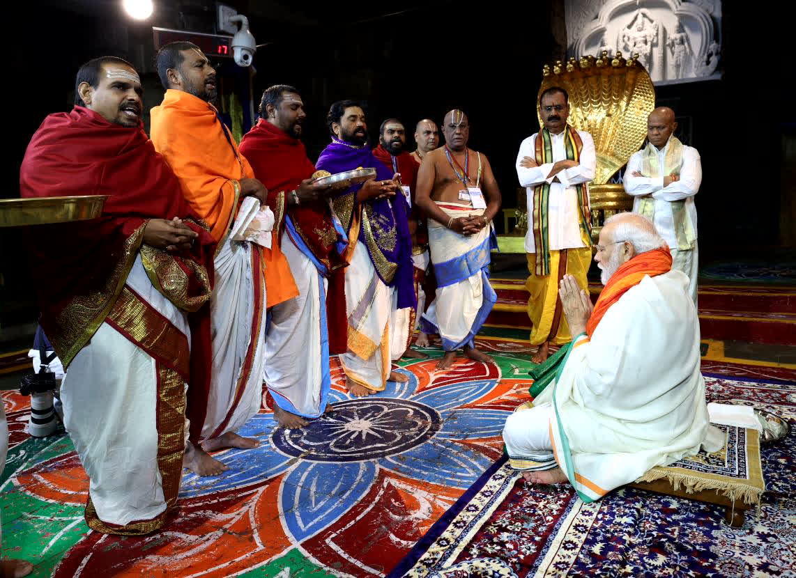 पीएम मोदी ने सोमवार सुबह तिरुमला स्थित श्री वेंकटेश्वर स्वामी मंदिर में पूजा अचर्ना की।