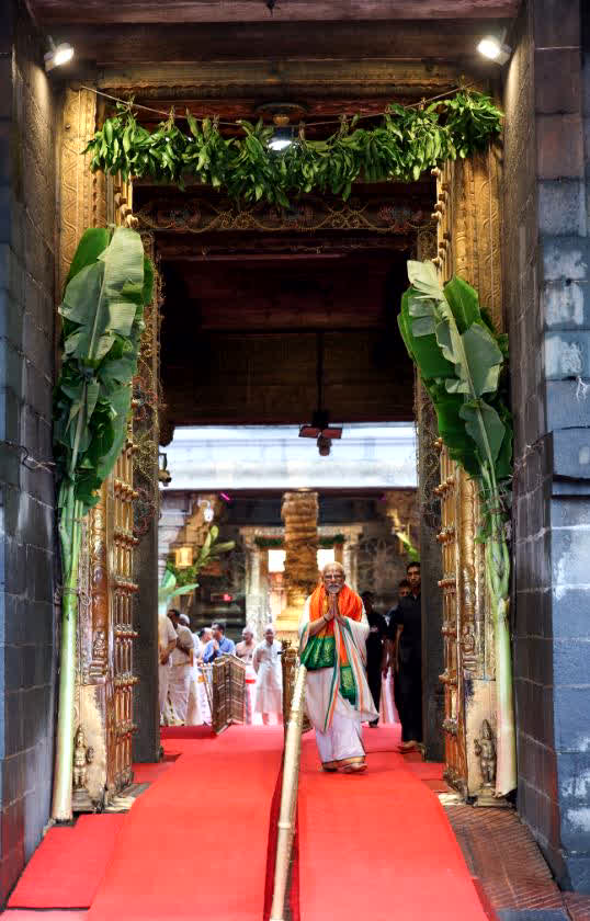 PM Modi in Tirupati: श्री वेंकटेश्वर स्वामी के दरबार पहुंचे पीएम मोदी, देशवासियों के अच्छे स्वास्थ्य, कल्याण और समृद्धि के लिए की प्रार्थना