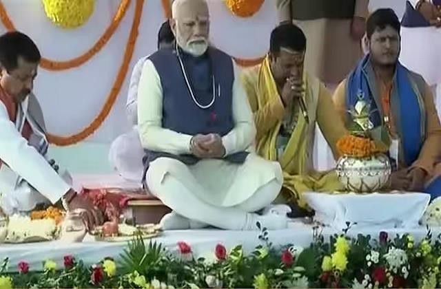 प्रधानमंत्री मोदी की यात्रा गंगा, यमुना और सरस्वती नदियों के संगम पर एक औपचारिक पूजा और दर्शन के साथ शुरू हुई।