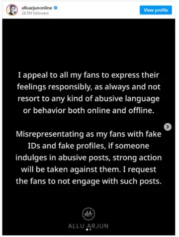 अर्जुन ने सोशल मीडिया पर अपने प्रशंसकों के लिए सावधानी बरतने की बात कही। उन्होंने ‘एक्स’ पर पोस्ट किए गए एक बयान में कहा, ”मैं अपने सभी प्रशंसकों से हमेशा की तरह जिम्मेदारी से अपनी भावनाओं को व्यक्त करने और ऑनलाइन और ऑफलाइन किसी भी तरह की अपमानजनक भाषा या टिप्पणी ना करने की अपील करता हूं।”