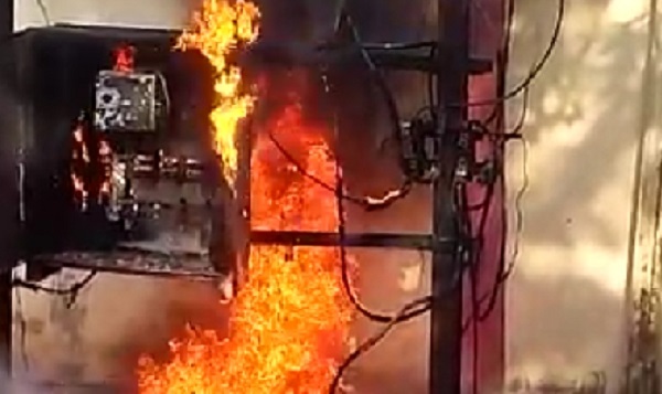 रायगढ़ 29 नवंबर 2023। शहर के गोगा मंदिर चौक पर स्थित एक बिजली ट्रांसफार्मर में बुधवार की सुबह भीषण आग लग गई। धीरे-धीरे आग बढ़ती चली गईं। देखते ही देखते आग की लपटे आसमान छूने लगी। आसपास के लोगों ने स्थानीय पुलिस को मामले की जानकारी दी। सूचना पर पहुंची पुलिस ने फायर ब्रिगेड को मामले की जानकारी दी। जिसके बाद मौके पर पहुंची फायर ब्रिगेड की गाड़ी ने आग पर काबू पाया। इस दौरान ट्रांसफार्मर में धमाके होने के डर लोगों में दहशत फैल गई। कोई भी ट्रांसफार्मर के निकट जा नहीं जा सका।