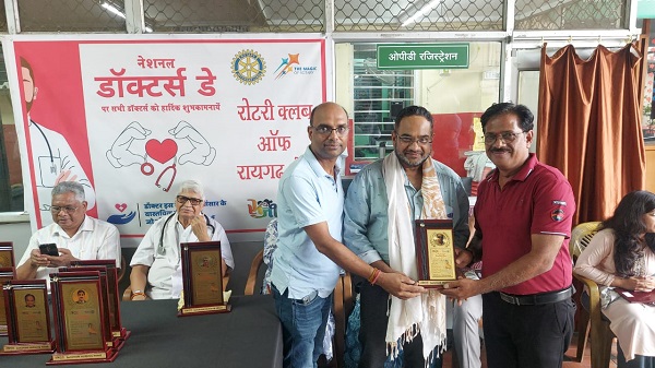 रायगढ़ – – शहर की सुप्रसिद्ध सामाजिक संस्था रोटरी क्लब ऑफ रायगढ़ ग्रेटर की अभिनव पहल से क्लब के संस्थापक रोटेरियन पुरुषोत्तम अग्रवाल व क्लब अध्यक्ष नीरज गुप्ता के विशेष मार्गदर्शन में सदस्यों ने आज डॉक्टर्स डे के सुअवसर पर एक जुलाई को शहर के चिकित्सा जगत में सेवा देने वाले समर्पित चिकित्सकों का सम्मान कार्यक्रम शहर के संजीवनी नर्सिंग होम में आज सुबह 11 बजे चिकित्सा जगत के सुप्रसिद्ध चिकित्सक डॉ विधानचंद्रराय की प्रतिमा के समक्ष दीप व पुष्पअर्पित कर उन्हें नमन किया। इसके पश्चात शहर के नामचीन 33 चिकित्सकों का सम्मान संजीवनी नर्सिंग होम में शाल श्रीफल व प्रतीक चिन्ह देकर सम्मानित किया गया। वहीं इस कार्यक्रम के पश्चात क्लब के सदस्यों ने शहर के चिकित्सकों व सम्मानीय सीए के निजी स्थान में जाकर उन्हें शाल श्रीफल व प्रतीक चिह्न देकर सम्मानित किया व डॉक्टर्स डे को यादगार ढंग से मनाया।