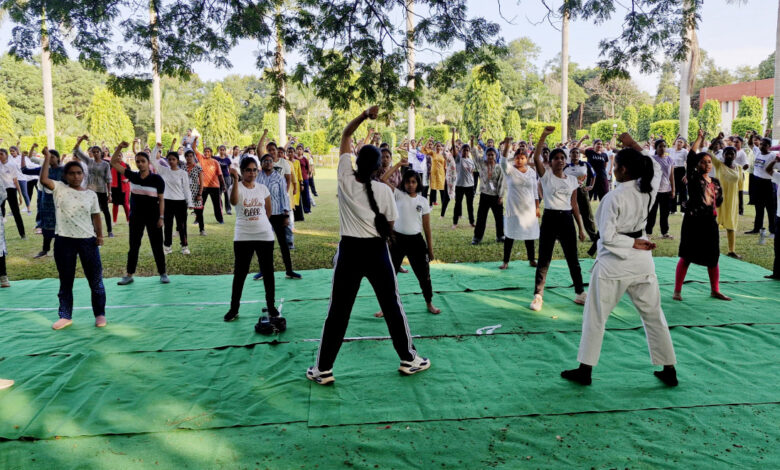 छात्राओं, महिला प्राध्यापकों-कर्मचारियों, उनके परिवार की महिलाओं एवं बालिकाओं ने सीखा कैसे करें शारीरिक स्वरक्षा