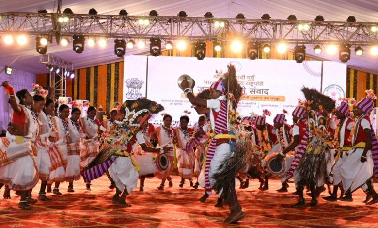 राष्ट्रपति द्रौपदी मुर्मु के समक्ष आदिवासियों ने पारंपरिक वेशभूषा में प्रसिद्ध लोकनृत्य का किया प्रदर्शन