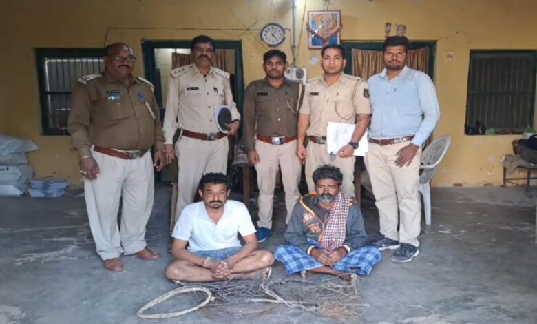 सारंगढ़-बिलाईगढ़. वन विभाग ने बड़ी सफलता हासिल करते हुए दो शिकारी को गिरफ्तार किया है. दोनों के खिलाफ तेंदुआ को जाल बिछाकर मारने का आरोप है. आरोपियों के पास से वन विभाग ने भारी मात्रा में बिजली और फैसिंग तार जब्त किया है.